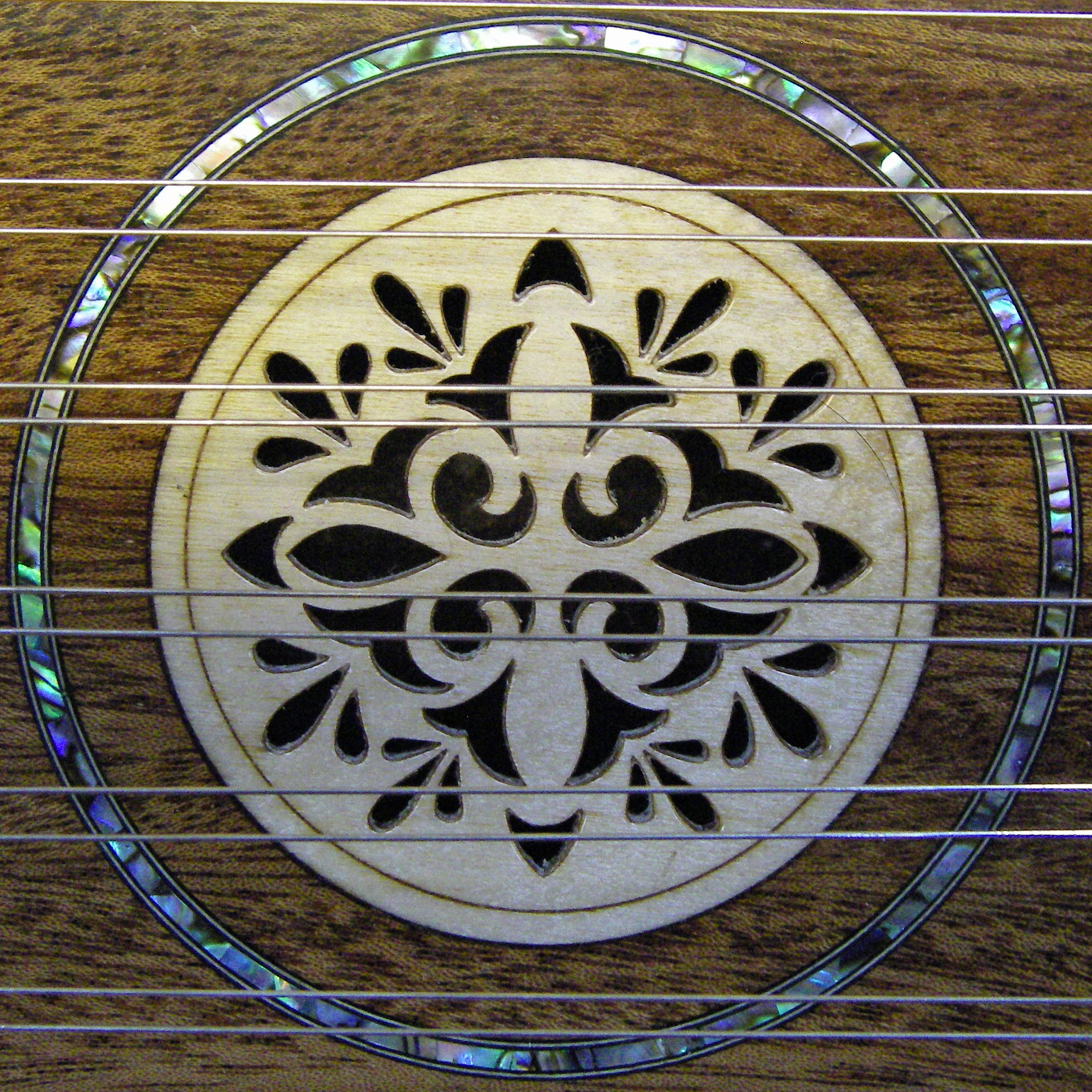Abalone Shell And Black and White Banding Inlayed Around The The Rosettes